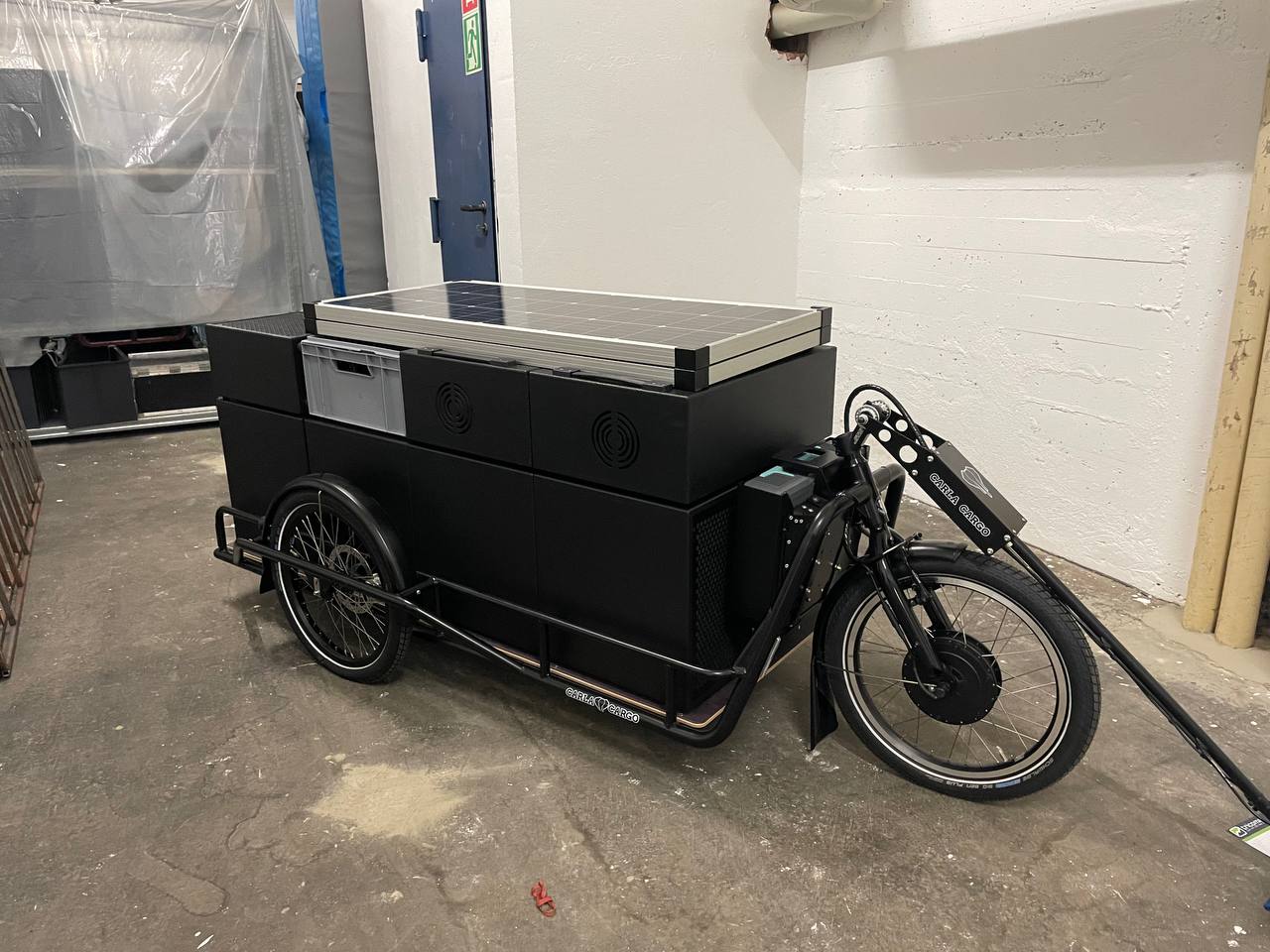 DRIFT ist ein Lastenfahrradanhänger mit Photovoltaik-Paneelen, Stromspeicher und integrierter Musikanlage.