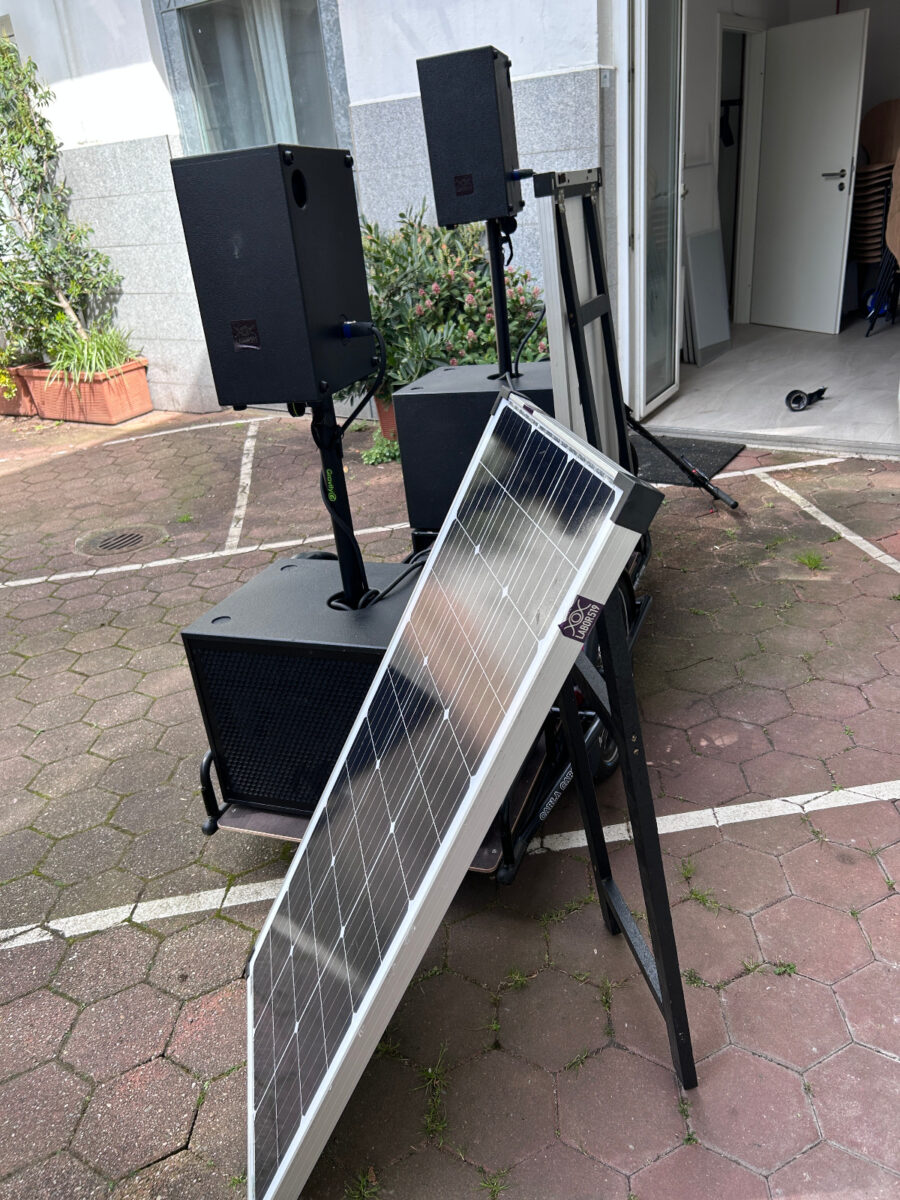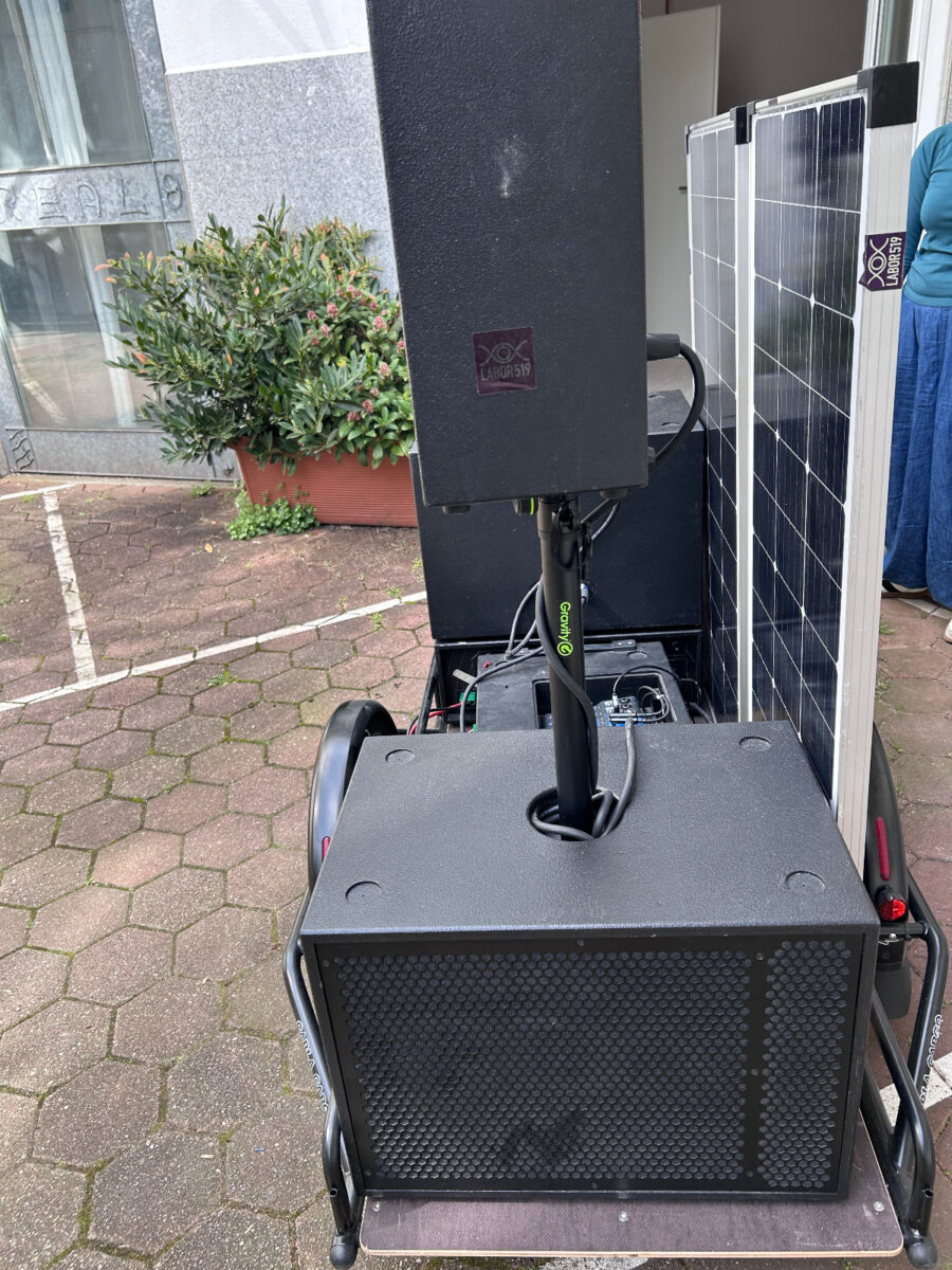 Mobiles solarbetriebenes Soundsystem und Stromspeicher für den öffentlichen Raum.