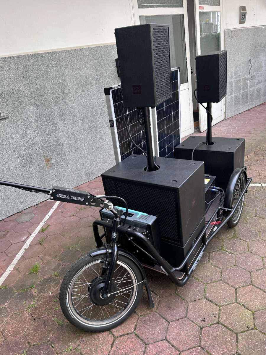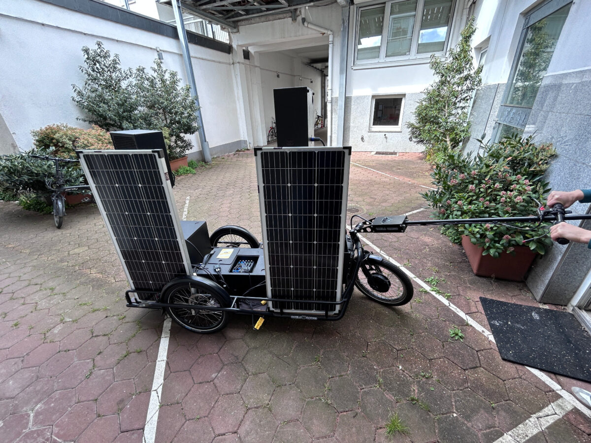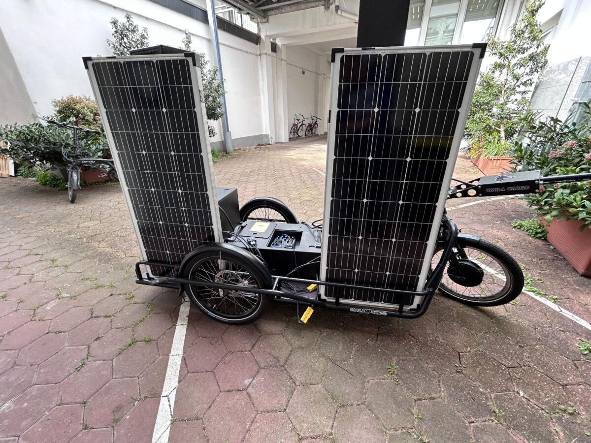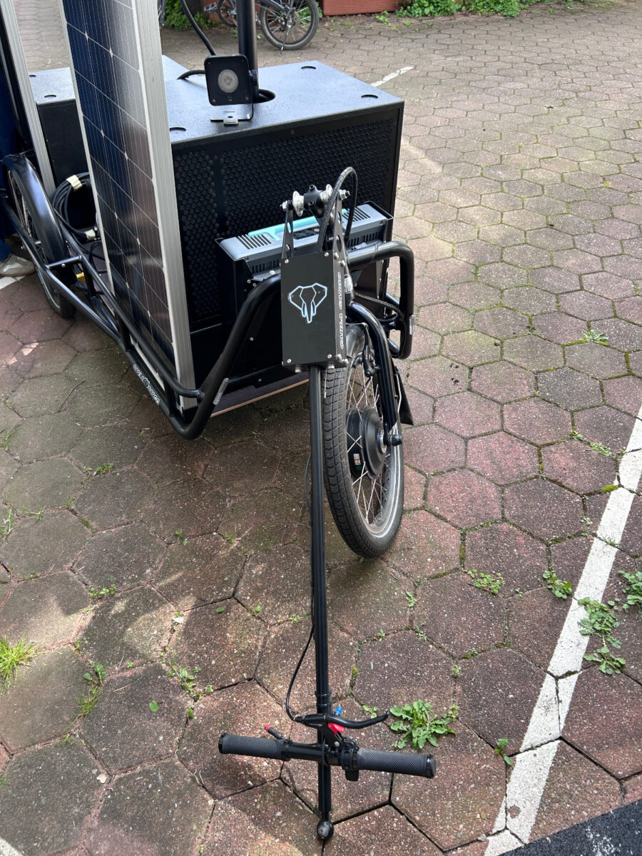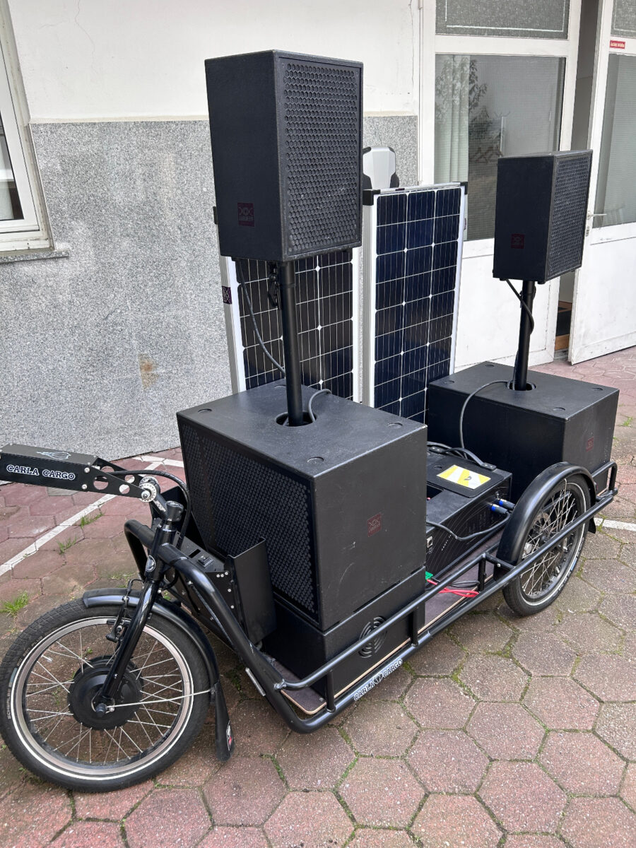 Unabhängig vom Stromnetz. Mit dem Fahrrad beweglich. Für Veranstaltungen, Interventionen und temporäre Infrastrukturen ausleihbar.