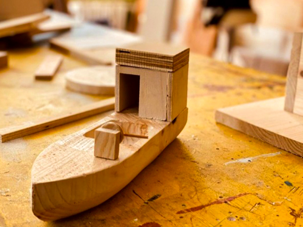 Mit Holz gestalten, hämmern, schleifen – und staunen, was alles entsteht. In unserer Werkstatt entdecken Kinder,